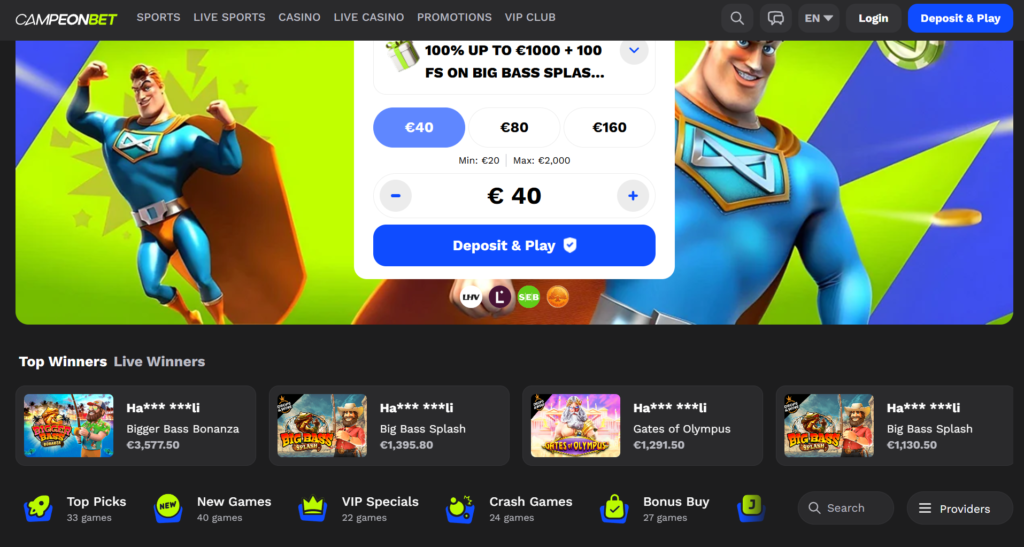 Campeonbet on rahvusvaheline online-kasiino ja spordiennustuste platvorm, mis tegutseb alates 2018. aastast. Portaali loomisel on keskendutud laiale mänguvalikule, mitmekülgsetele panustamisvõimalustele ja kasutajasõbralikule ülesehitusele. Platvorm koondab endasse kasiinomängud, live-kasiino, virtuaalspordi ja spordiennustused, pakkudes mängijatele ühtset ja terviklikku lahendust.