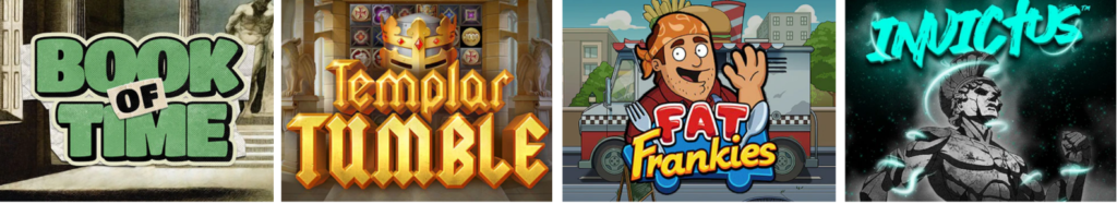 Mängud: Book of Time,   Templar Tumble,   Fat Frankies,   Invictus
